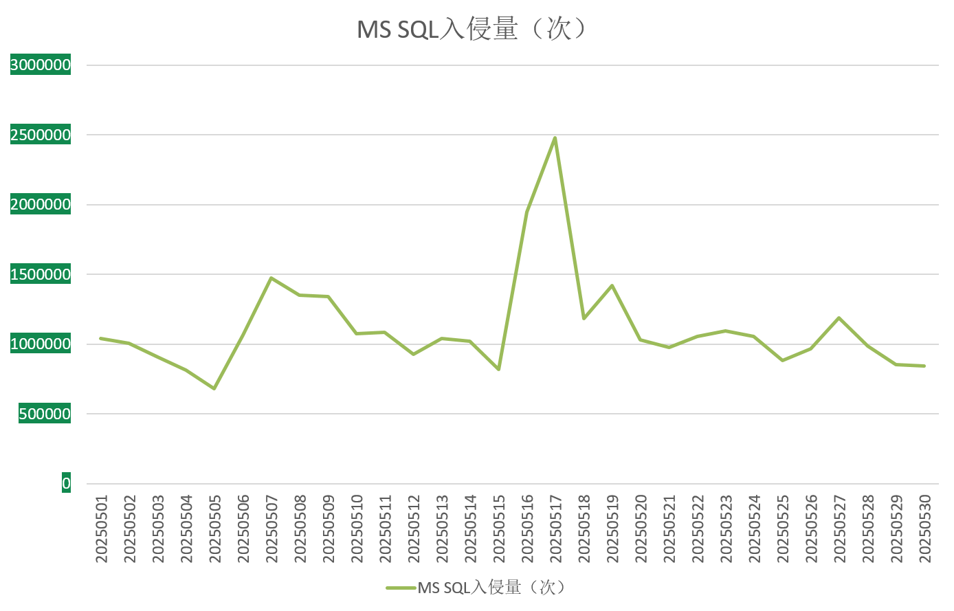 图8. 2025年5月监控到的MS SQL入侵量
